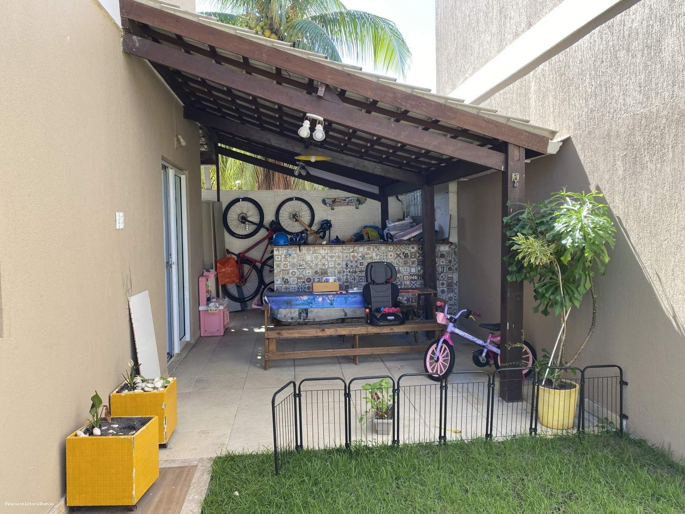 Esta residência se destaca pela excelente ventilação natural em todos os cômodos. No pavimento térreo, a entrada é marcada por uma varanda ampla com fechamento em Reiki, já preparada para ser um ambiente gourmet com churrasqueira. A sala é dividida em dois ambientes integrados, lavabo e cozinha equipada com armários e espaço para cooktop.