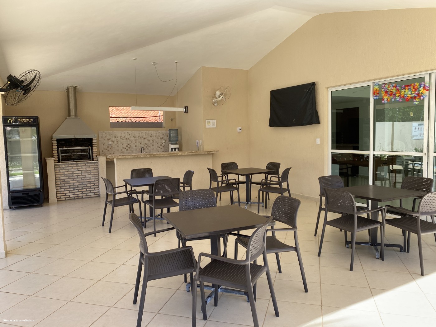 Salão de festas com churrasqueira;